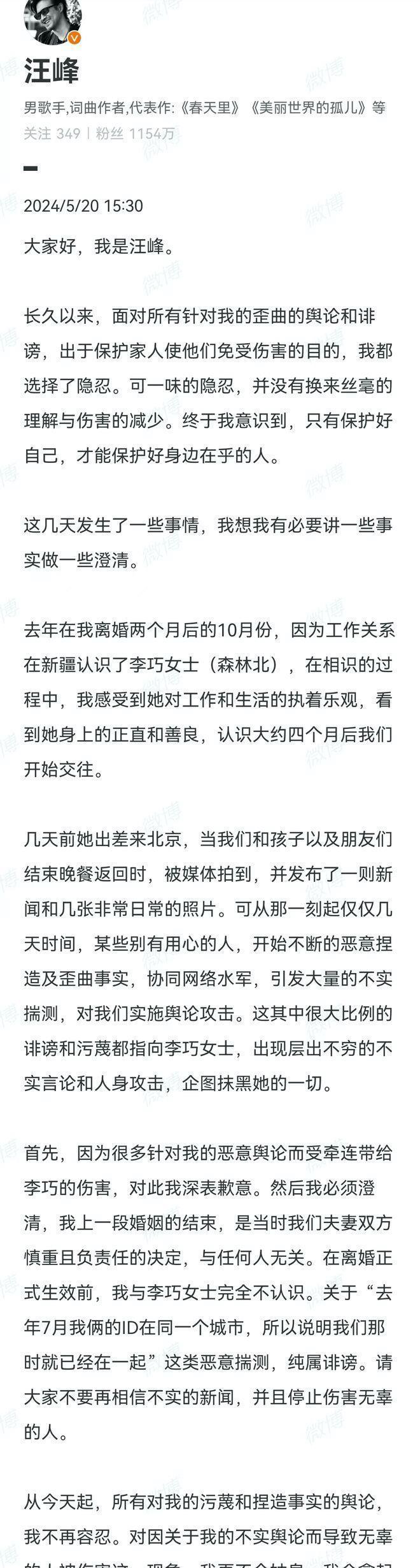 5月20日是不少情侣秀恩爱的日子,亦然天下抒发爱意的日子。便是在这一天,汪峰终于公布了他的恋情,承认了女友便是李巧。